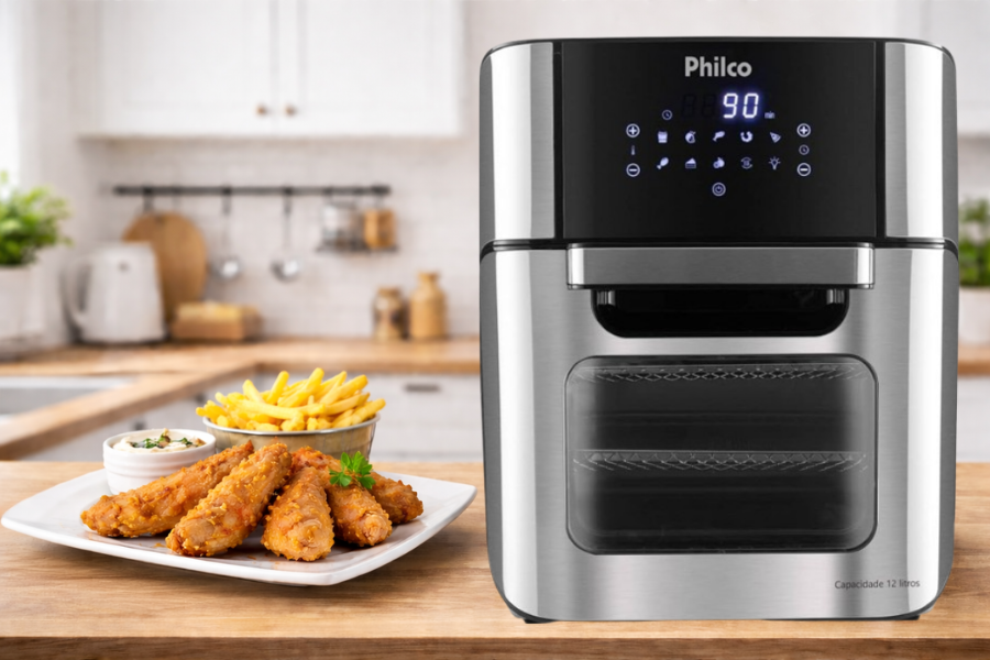 “Se você está procurando uma air fryer grande e versátil, provavelmente já encontrou a Philco PFR2200 12L nas suas pesquisas. Ela promete espaço, potência e funções que vão além da fritura comum. Mas será que realmente funciona bem no dia a dia? É isso que vamos analisar aqui.”